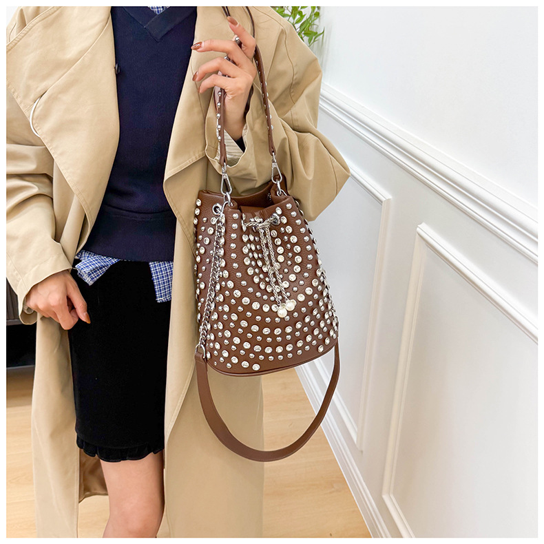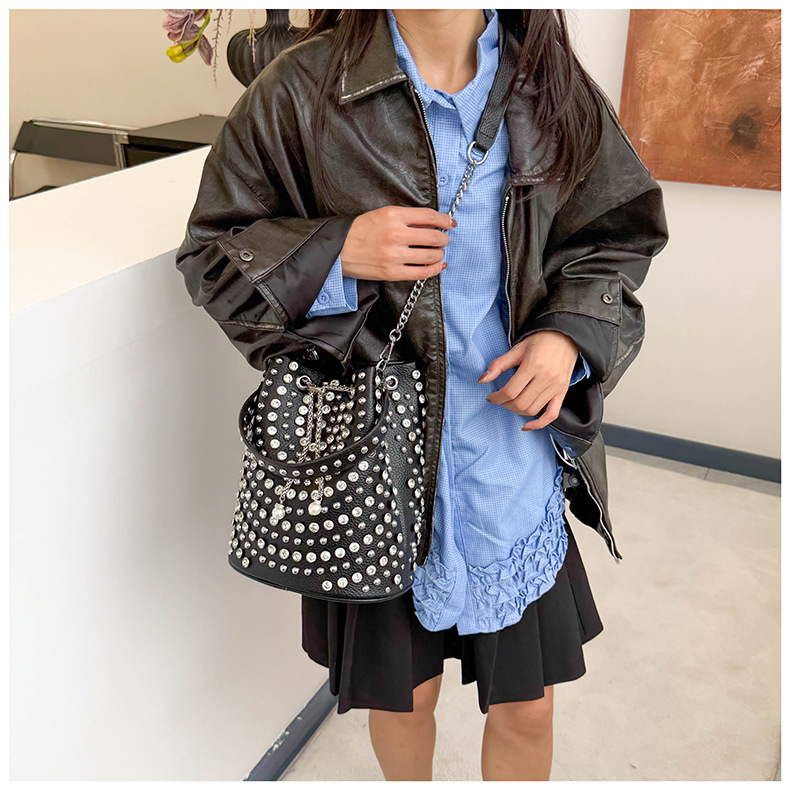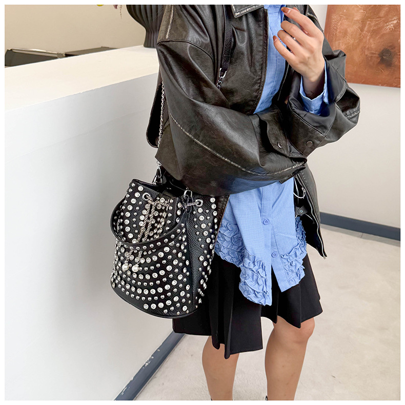 Bucket Bag with Rivet Punk Style