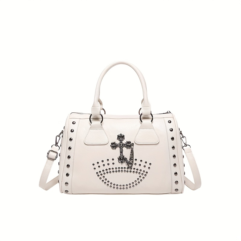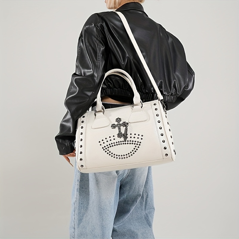 · The bag features a solid color design with a punk-inspired aesthetic for a stylish look.