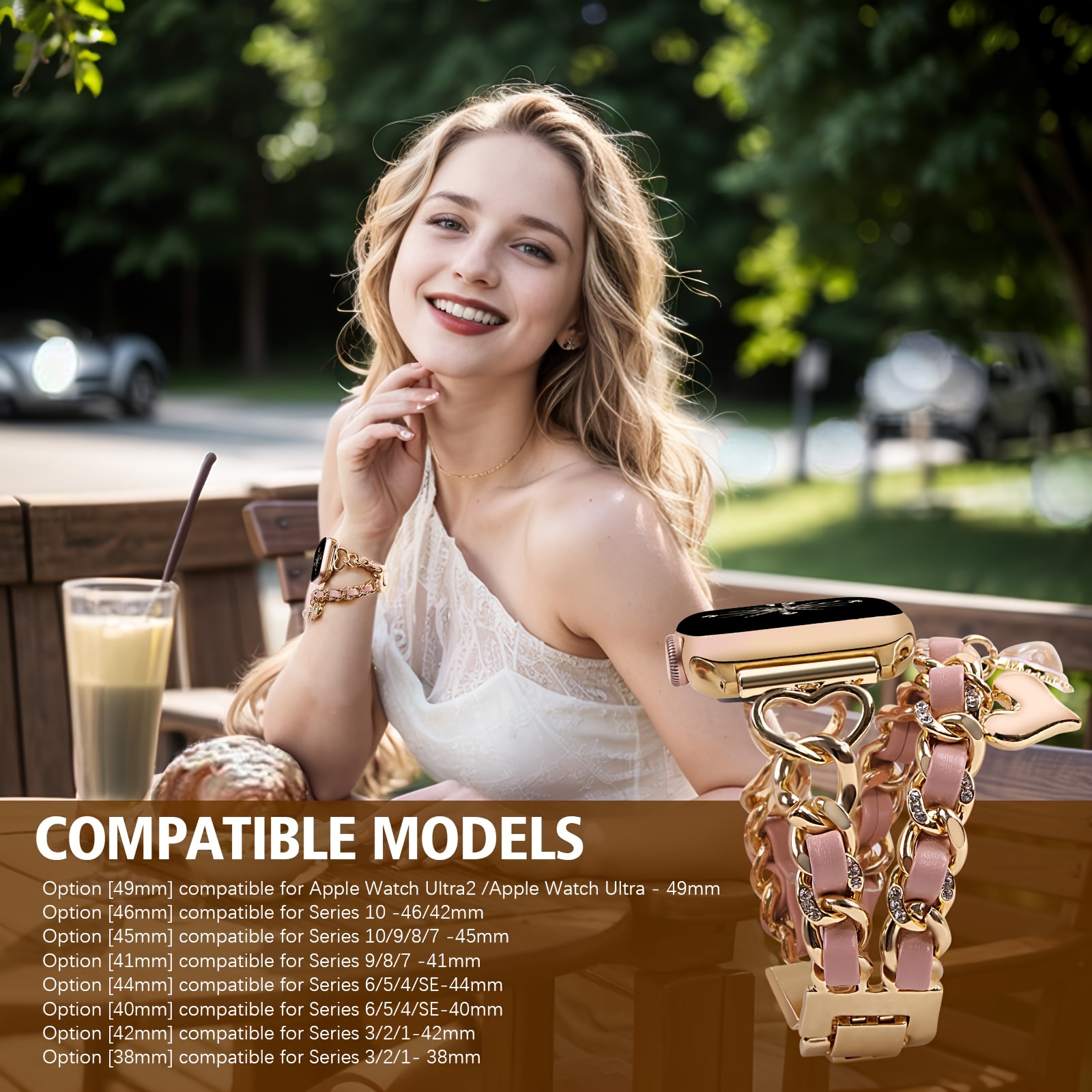 Stylish Heart-Themed Metal Strap Bracelet with a Cowboy Chain Design for The for iwatch Ultra 2, Compatible with for apple Watch Series 10/9/8/7/6/5/4/3/SE, Suitable for Women in Sizes 38/40/41/42/44/45/46/49Mm