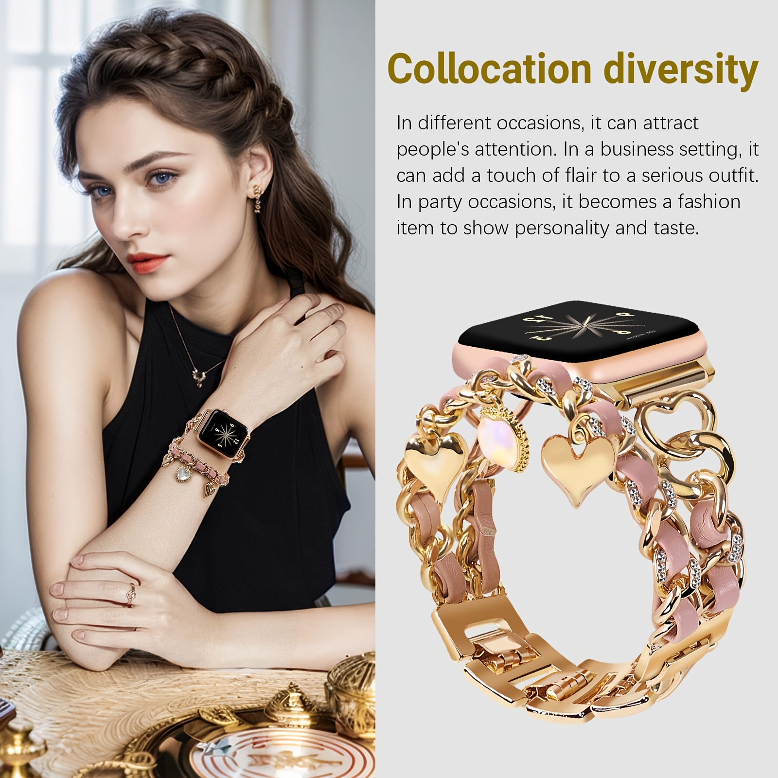 · This smartwatch band features a heart-themed design for a charming look.
